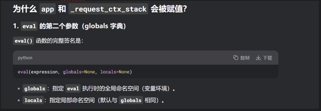 这其实算我的一个当时看不懂的地方就是app这些的赋值 deepseek说的很明白这只是获得app的一个方式 还有其他的在之前pickle的payload里给出来了