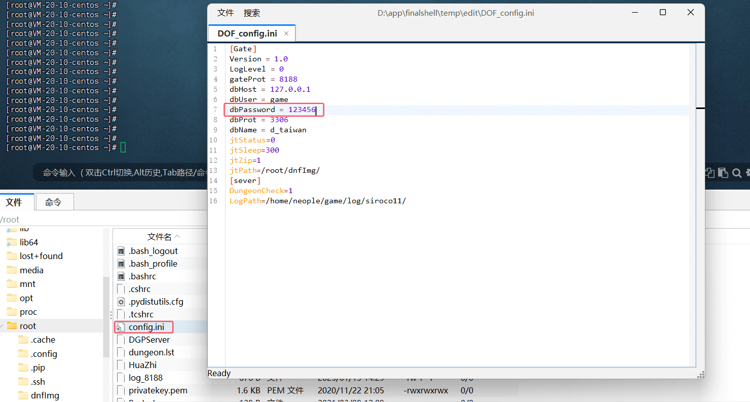 先将服务器重启下,先改网关文件/root/config.ini