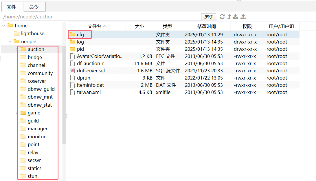 ,将这 4 个文件全部上传到服务器/home/neople/game
