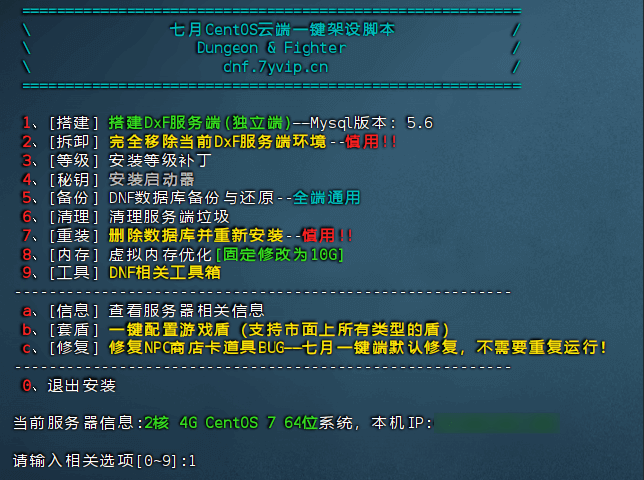 选择搭建服务端,填写 1 回车。