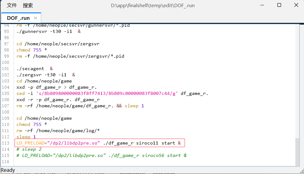 最后修改启动/root/run文件,拉到最后,找到./df_game_r siroco11 start &,改为: