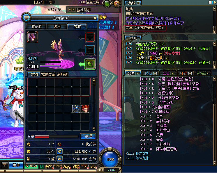 发送成功后登录角色,使用宠物清理券,会自动清空宠物栏前两排的宠物,Nice~