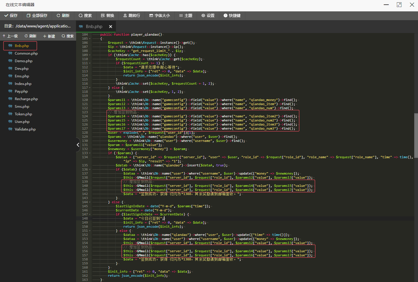然后修改后台文件/data/www/agent/application/api/controller/Bnb.php,幸好我找的这个版本后台不是加密的,所以可以自行更改。