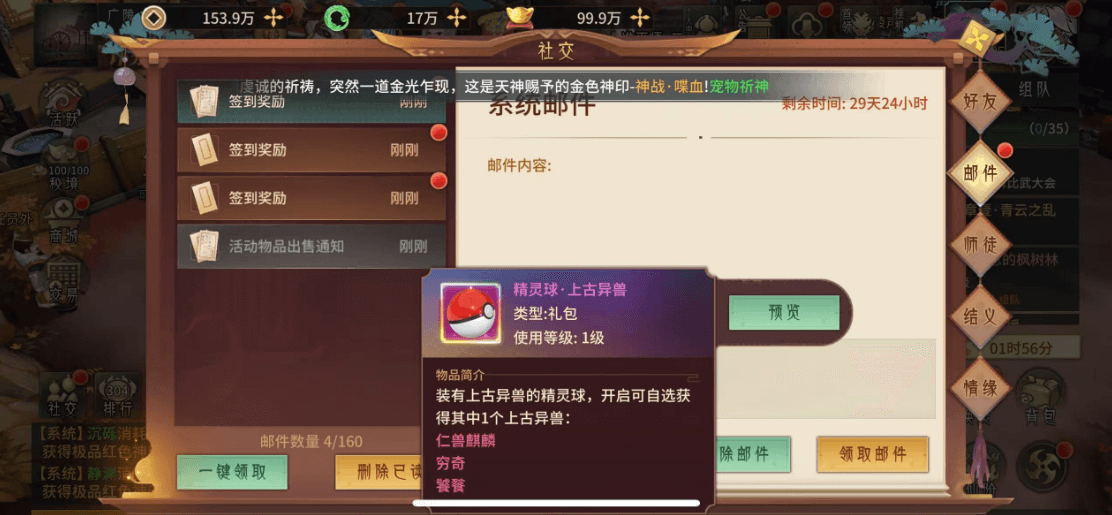 游戏玩半个月后,玩家反馈有一些道具物品难度获得极大,或者根本无法获取,比如星辰技能书和精灵球上古异兽,所以我准备通过每日签到,每天送给大家。