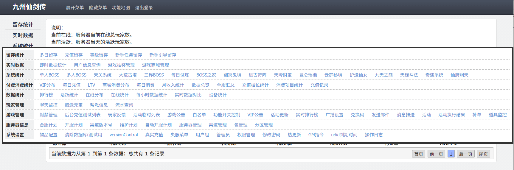 游戏还提供了运营后台,链接:http://IP:10081,默认账号:ggbond131,默认密码:Cc520809Zz,运营后台主要是查看游戏相关数据,其他的功能暂时也没研究,因为用不到- -,也不太好使的样子。