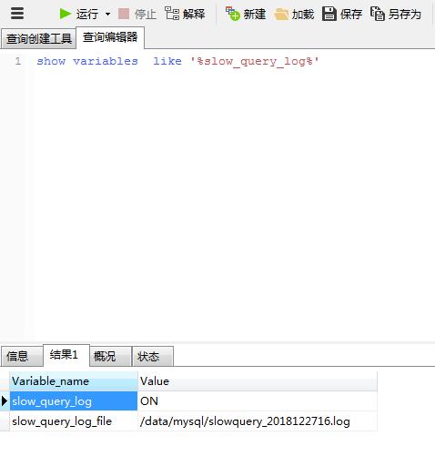 默认情况下slow_query_log的值为OFF,表示慢查询日志是禁用的,可以通过设置slow_query_log的值来开启,如下图: