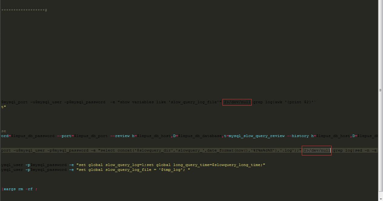 慢日志查询脚本为:lepus_slowquery.sh,路径为:lepus-master\lepus-master\lepus\Lepus\lepus_v3.7\python\client\mysql,代码如下图: