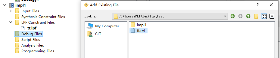 在左侧 file list 的debug files 当中右键添加已存在文件(.rvl格式);