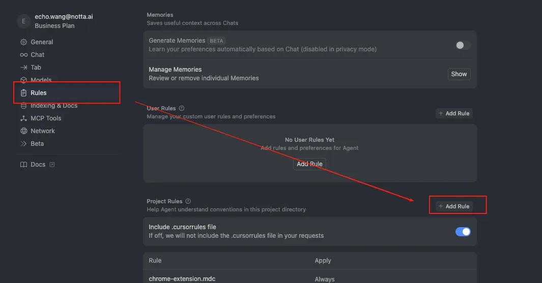 然后我们打开 cursor 设置,选择 project rule,点击 add