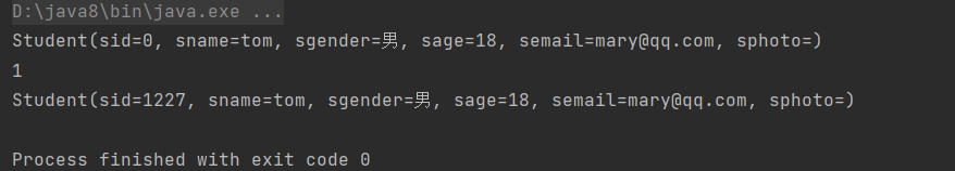 - Student student = new Student(0, "tom", "男", 18, "mary@qq.com", "");