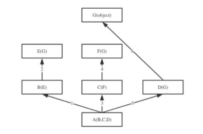 [<class '__main__.D'>, <class '__main__.B'>, <class '__main__.C'>, <class '__main__.A'>, <class 'object'>]