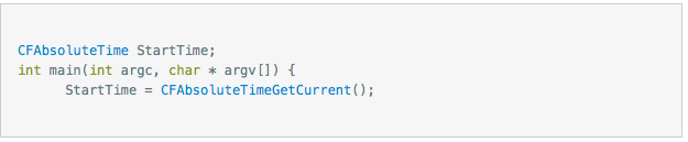 对于main()阶段,主要是测量main()函数开始执行到didFinishLaunchingWithOptions执行结束的耗时,就需要自己插入代码到工程中了。先在main()函数里用变量StartTime记录当前时间: