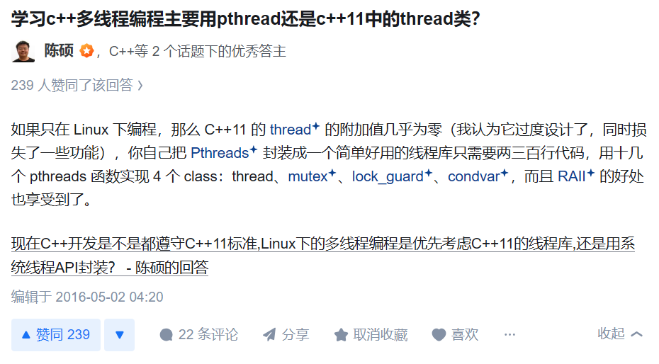 c++11 的std::thread提供了更高层的抽象,更加简便易用、可移植性佳,而pthread功能更偏底层、功能也更强大。