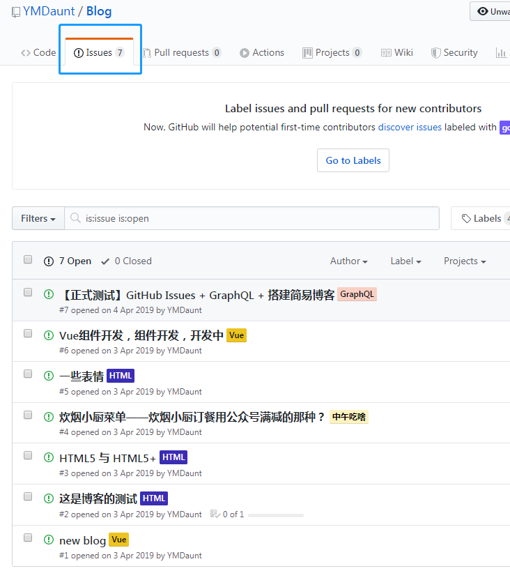 这里我们用GitHub的Issues作为写博客的主要工具,也可以理解为它是生成博客内容数据的服务器