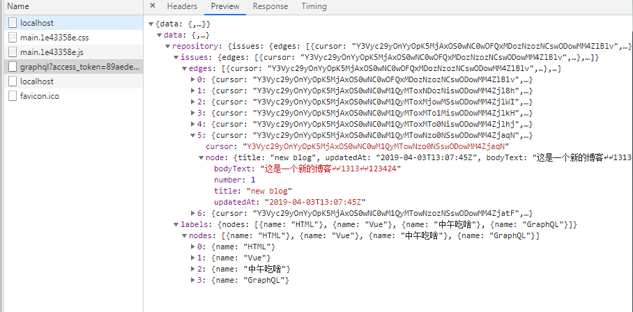 title,updatedAt,bodyText,number这些字段刚好就是Issues中文章的信息