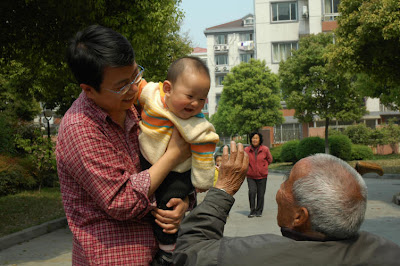 复活节,隔壁阿叔给了童童一个复活蛋,还拍了多张照片。