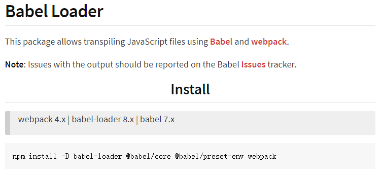 根据官方文档所示)https://www.npmjs.com/package/babel-loader
