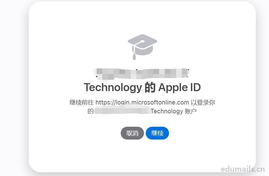 继续前往 https://login.microsoftonline.com 以登录你的学校账户,我们点击继续: