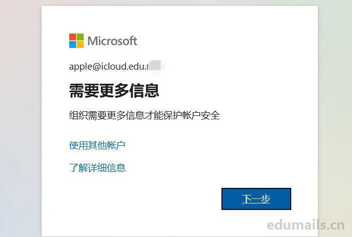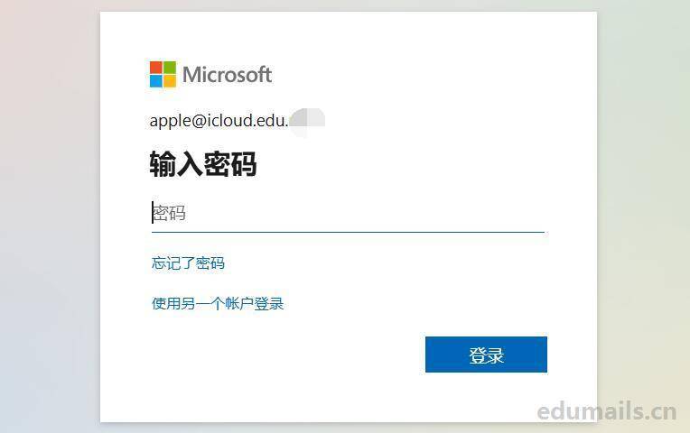 然后我们的网页会跳转到edu邮箱的微软系统页面如下图所示:正常输入edu邮箱密码,也等同于iCloud密码。