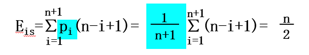 假设在第 i 个位置之前插入的概率为Pi,则在长度为n的顺序表中插入一个元素所需移动元素次数的期望值为:
