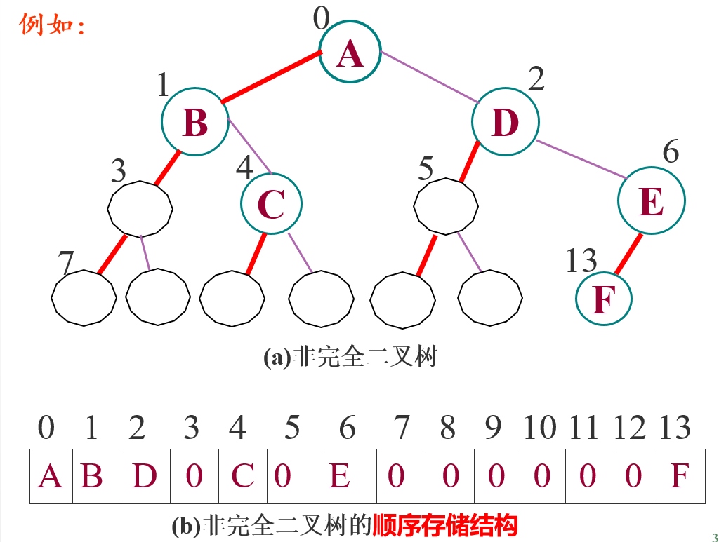 用一组地址连续的存储单元(一维数组)依次自上而下、自左至右存储完全二叉树上的结点元素——将完全二叉树上编号为i的结点元素存储在一维数组中下标为i-1的数组分量中