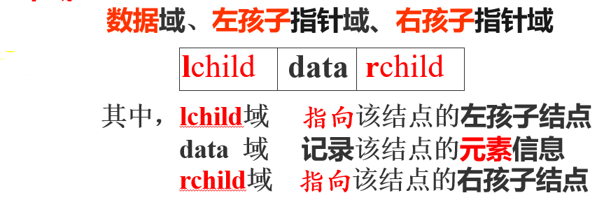 1 typedef struct BiTNode { 2 TelemType data; 3 struct BiTNode *lchild,*rchild; //存左右孩子的指针 4 } BiTNode, *BiTree; //结点类型 BiTNode