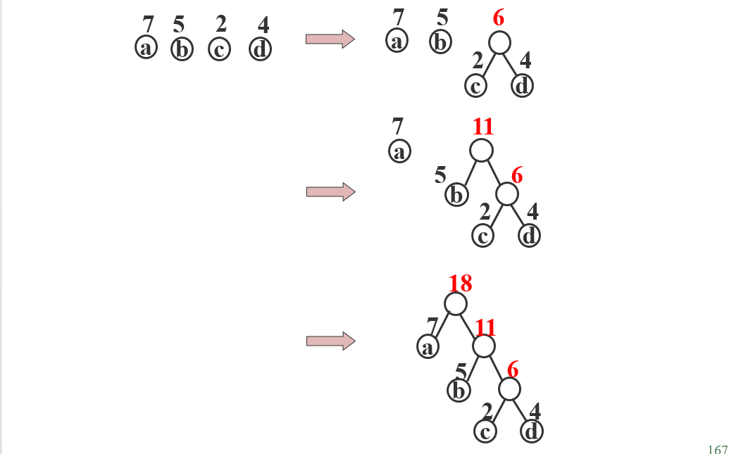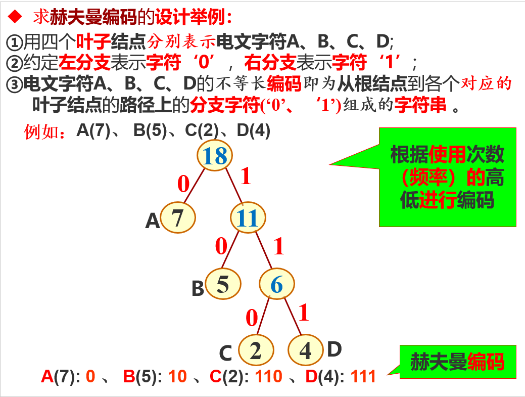 在用 n 个叶子结点构造一棵二叉树时,必存在一棵二叉树的带权路径长度WPL最小的二叉树,称为最优二叉树或赫夫曼树