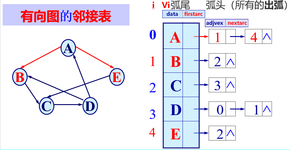 第i个单链表中的结点表示以顶点V_i为弧尾的弧