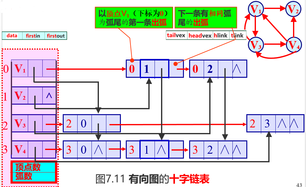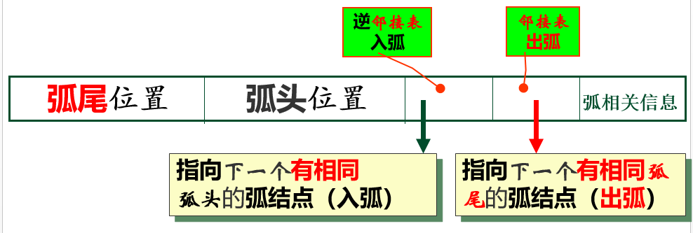 1 typedef struct ArcBox //弧结点的结构 2 {int tailvex, headvex; //该弧的弧尾和弧头的顶点位置 3 struct ArcBox *hlink, *tlink; //含义见上面框内 4 InfoType *info; //该弧相关信息的指针(可无) 5 } ArcBox ; //弧结点的类型名: ArcBox