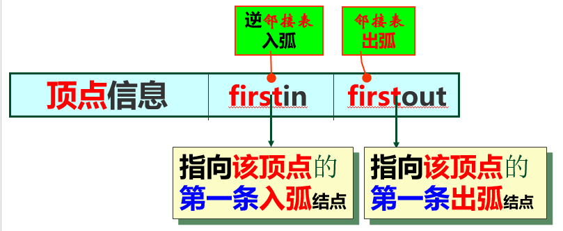 引入原因:邻接表若要求得第i个顶点的入度(入弧个数),则需要搜索所有的单链表,比较麻烦,解决方法
