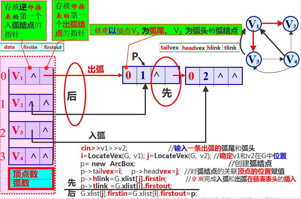 第i个单链表中的结点表示以顶点V_i为弧头的入弧