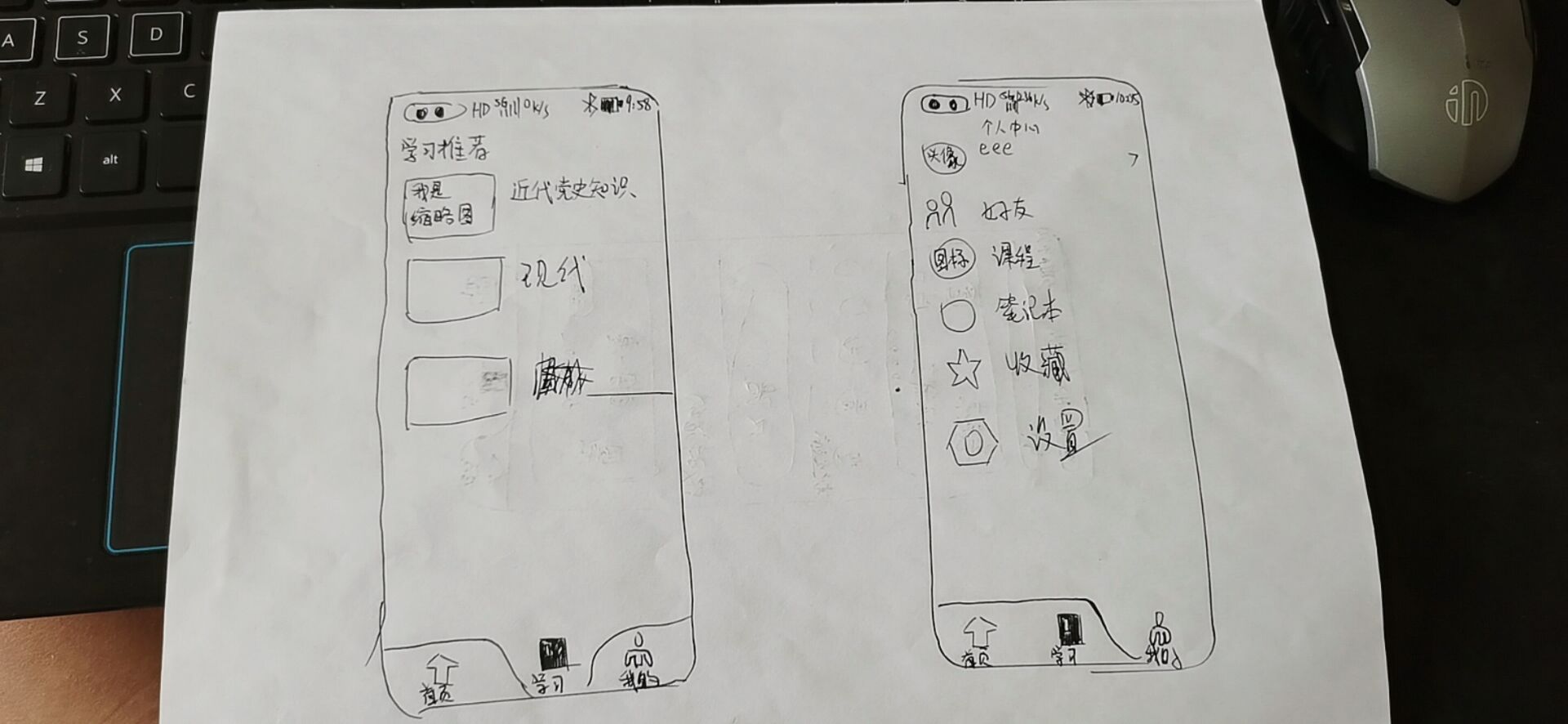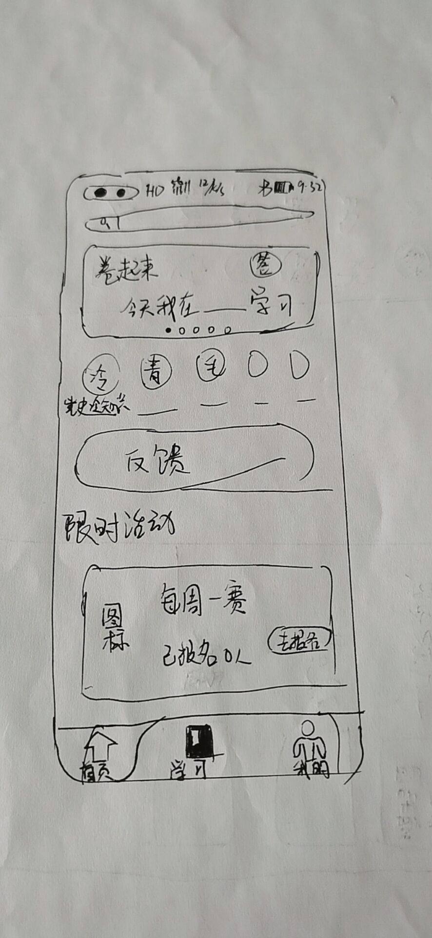 我们设计了三个主要的界面,分别是index主界面,study学习界面,mine我的界面