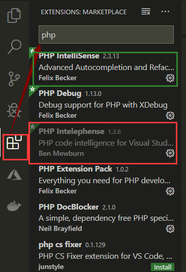 在vs code编辑器的侧边栏点击Extension-》搜索“php” -》可以看到有两个,屏蔽掉低版本的那个就行了,如下图(右击红色框住的那个版本的插件-》Disable 即可)