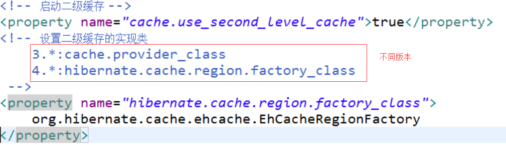 <property name="hibernate.cache.region.factory_class">org.hibernate.cache.ehcache.EhCacheRegionFactory</property>