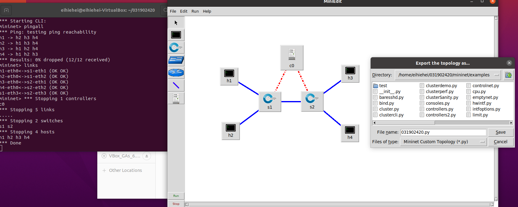 使用Mininet可视化工具,生成下图所示的拓扑,并保存拓扑文件名为学号.py。