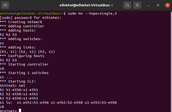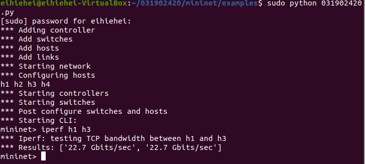 =4 在b)的基础上,在Mininet交互界面上新增1台主机并且连接到交换机上,再测试新拓扑的连通性。