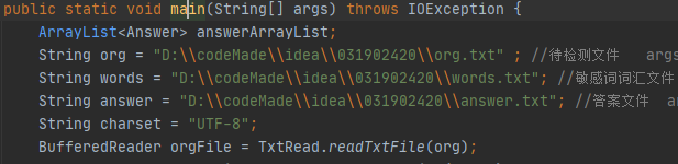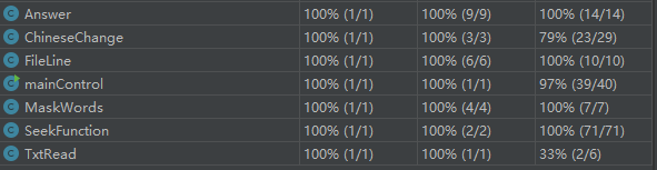 Answer类: 存入屏蔽字所在行,屏蔽字总数,屏蔽字,原文中的屏蔽字显示。