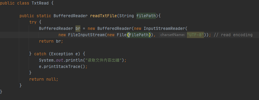 TxtRead类:传入地址字符串转化为UTF-8码的BufferReader并传出