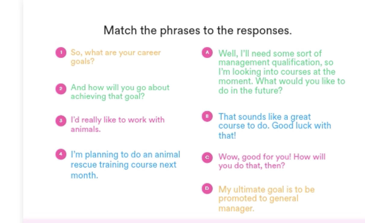 A:greate,now you can ask some quesions about my career goals for the future,and ask about theirs.