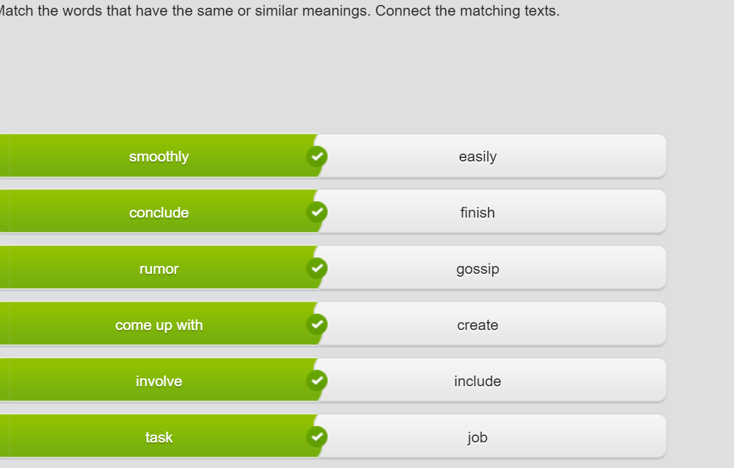 Match the words that have the same or similar meanings. Connect the matching texts.