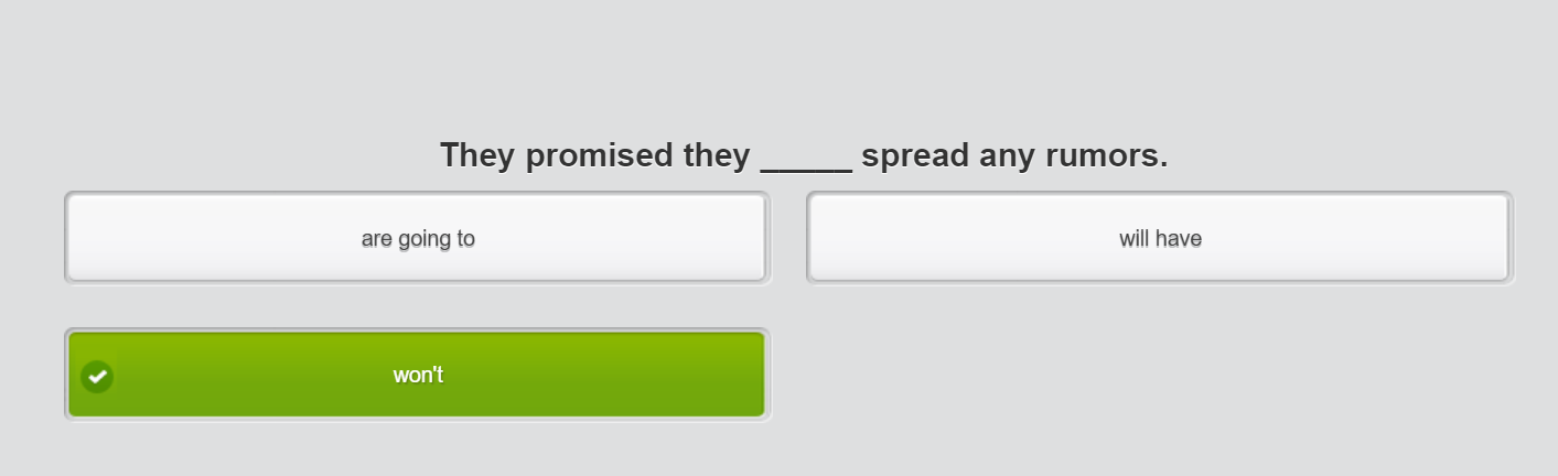 Use the simple future with will and its negative form won't to volunteer to do something, to make a promise or to make a prediction.