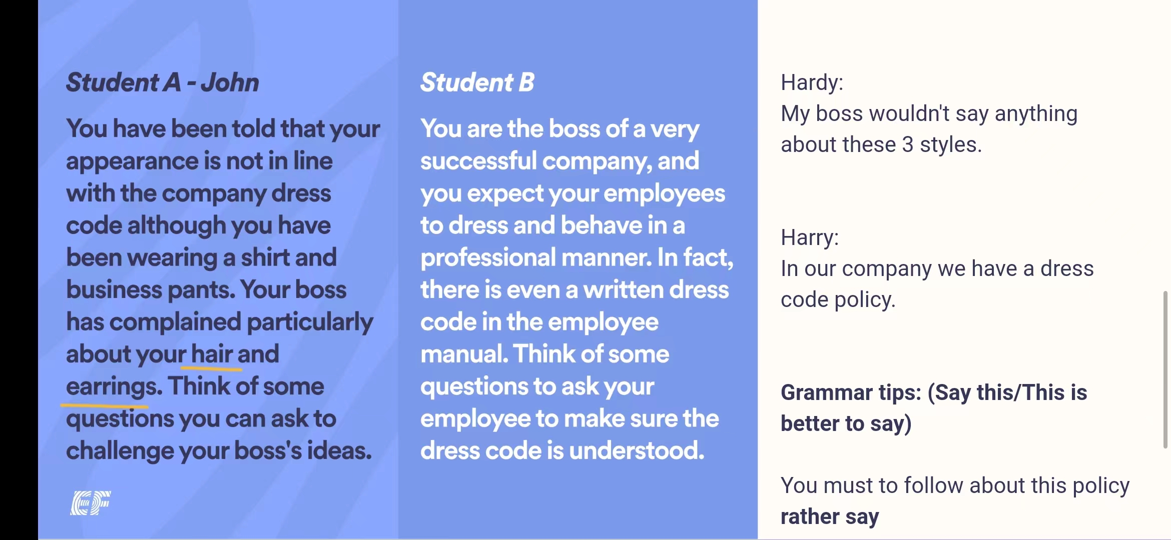 Many companies have a 'dress code' that explains what staff can and can't wear at work.Do you think these policies are fair,
