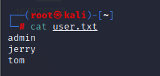 分别有三个ID admin,jerry,tom,将枚举出的用户写于文件中,作为用户字典