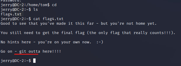 su进行用户切换切换为jerry,切换到jerry的用户目录下,发现flag4
