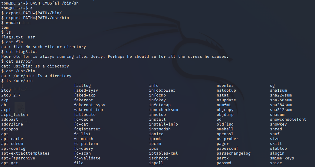 提示显示要我们使用su,还有tom一直在追jerry,可能是要我们使用su进行用户切换
