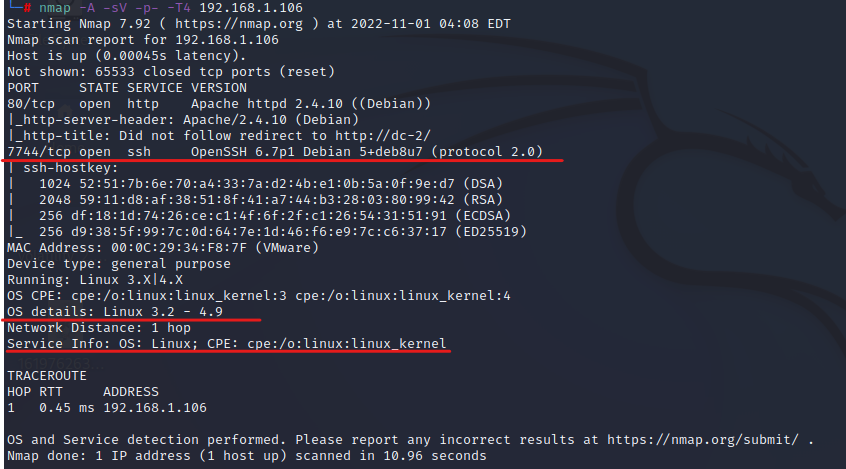 在使用nmap -A -sV -p- -T4 目标IP,可以看到扫描出来的信息有
