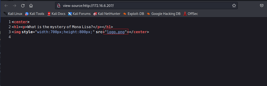 直接访问是一副蒙娜丽莎的画,查看源代码看看有没有其他信息