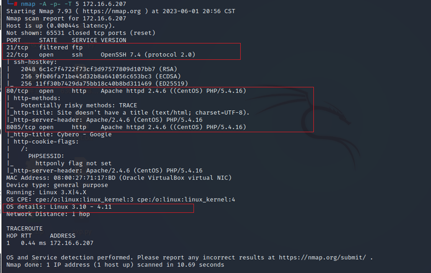 获取到靶机IP为172.16.6.207,使用nmap对靶机进行更详细的信息扫描