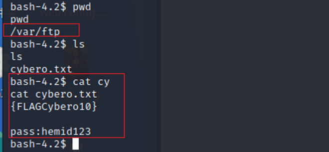 无法利用,有一个可以但是需要sudo我们不知道当前用户密码所以无法使用,再/var/ftp文件夹中有一个cybero.txt文件,查看文件内容。